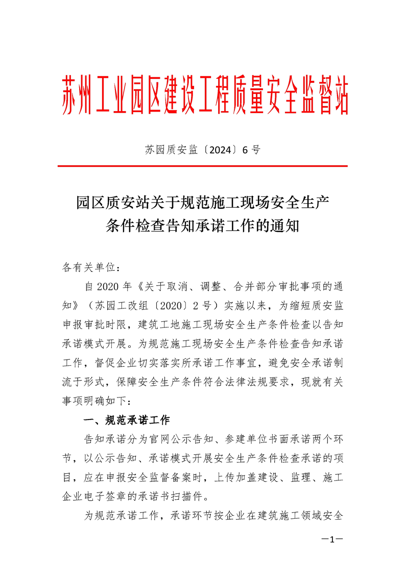 園區(qū)質(zhì)安站關(guān)于規(guī)范施工現(xiàn)場(chǎng)安全生產(chǎn)條件檢查告知承諾工作的通知
