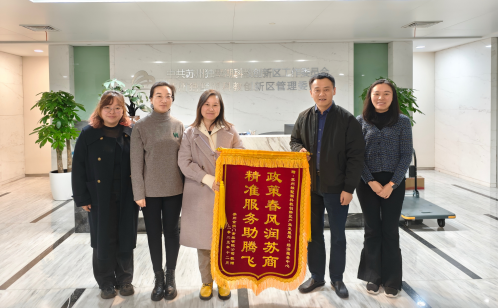 12月10日,蘇州金拱門食品有限公司負責人專程來到蘇州獨墅湖科教創新區管委會,送來“政策春風潤蘇商 精準服務助騰飛”的錦旗,表達對蘇州獨墅湖科教創新區精準高效服務、助力企業發展的衷心感謝。