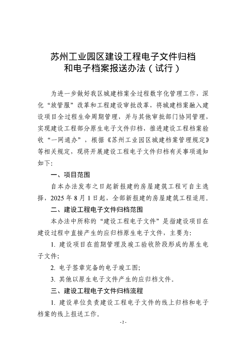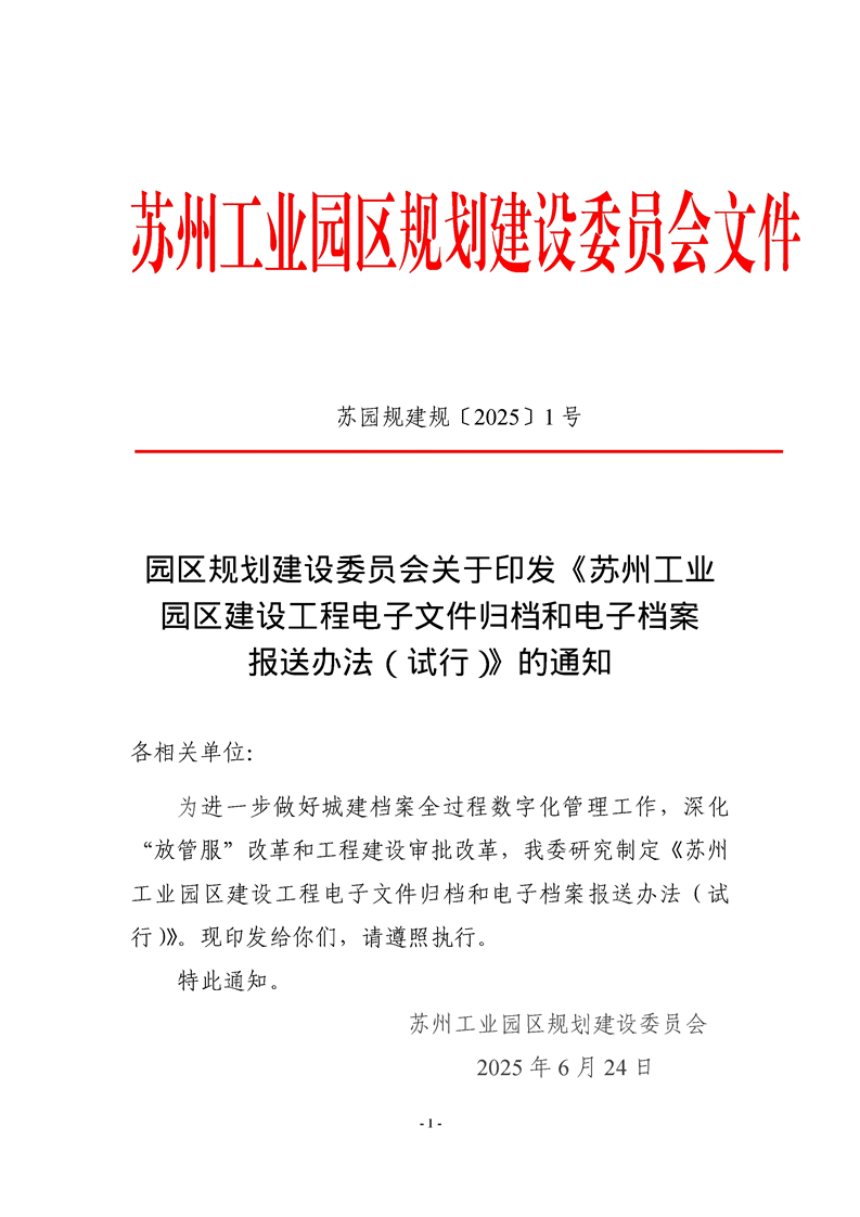 園區(qū)規(guī)劃建設(shè)委員會關(guān)于印發(fā)《蘇州工業(yè)園區(qū)建設(shè)工程電子文件歸檔和電子檔案報(bào)送辦法(試行)》的通知