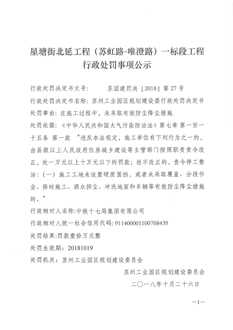 星塘街北延工程(蘇虹路-唯澄路)一標段工程行政處罰事項公示