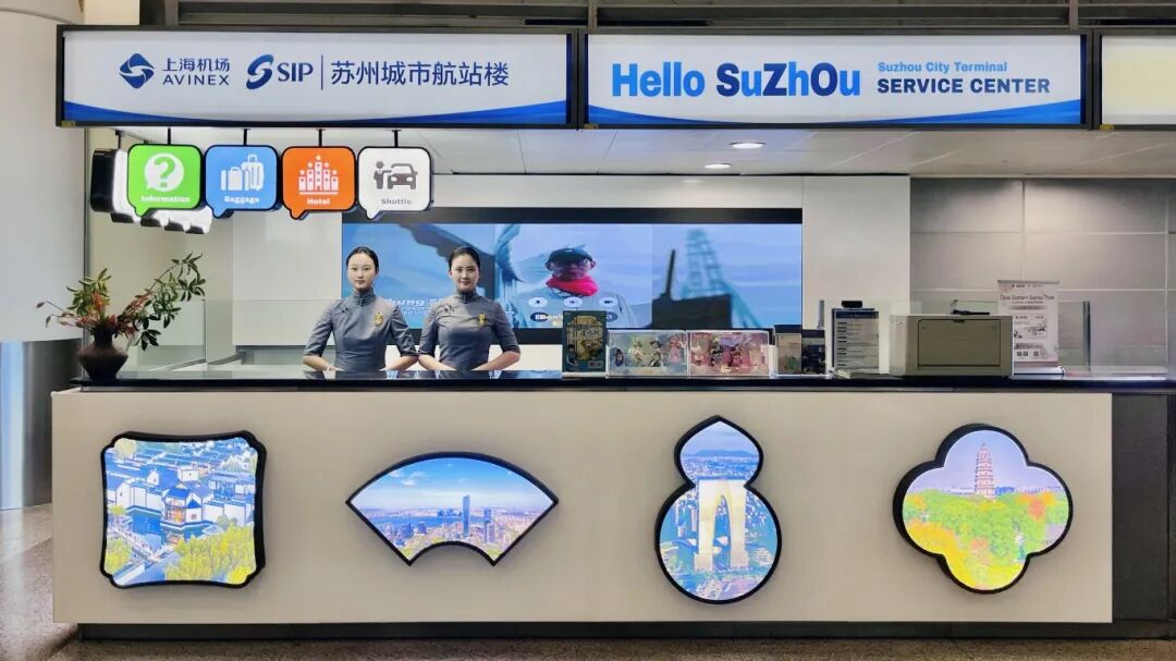 蘇州市が上海國際航空ハブと接続する重要なプラットフォームとして、上海空港蘇州サービスセンターは上海浦東國際空港のT1とT2ターミナルに位置し、旅客に問い合わせ、蘇州観光ルート紹介、蘇州への交通案內、空港送迎、荷物預かりなど様々なサービスを提供する。