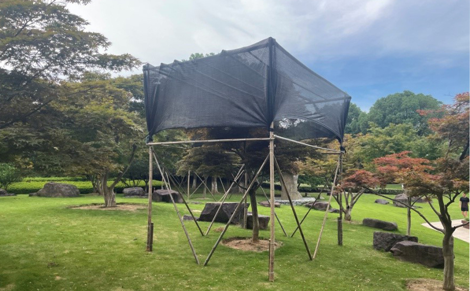 針對紅楓、造型樹等不耐高溫的特殊樹種,集團提前布局,采用遮陽網架等物理防護措施,有效降低了樹木表面的溫度,減少了陽光直射帶來的日灼傷害,保護了樹木的健康生長。