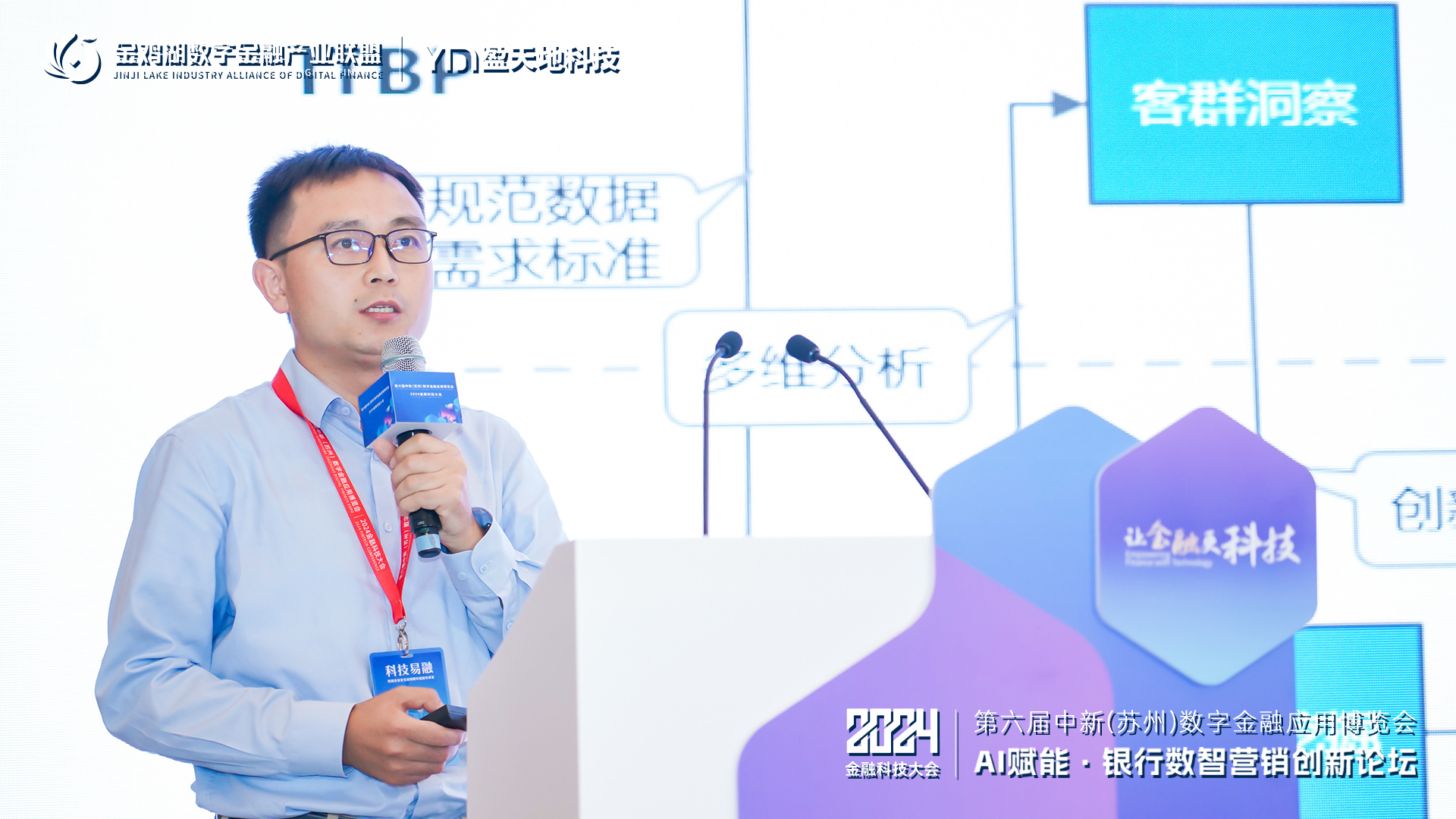蘇州盈天地資訊科技有限公司副總裁王湞廣、宋少鴻分別從各自的角度闡述了如何利用AI賦能構建智能營銷生態,讓增長自然發生。王湞廣詳細講解了AI驅動銀行營銷模式的變革以及公司智能體“小盈”開啟數智化營銷新范式,為金融機構快速確定營銷方案,讓各項業務增長自然發生。