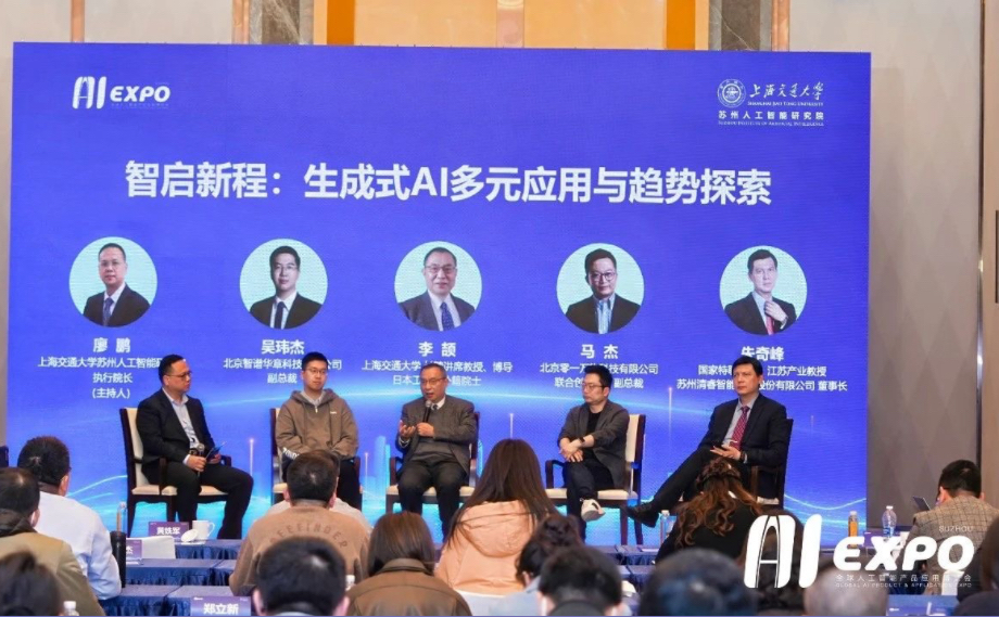 12月10日下午,2024全球人工智能產品應用博覽會(以下簡稱“2024全球智博會”)主題分論壇之一,生成式AI多元應用與未來趨勢論壇在蘇州國際博覽中心成功舉辦。本次論壇由新一代人工智能產業技術創新戰略聯盟主辦,上海交通大學蘇州人工智能研究院(以下稱“智研院”)承辦,智研院執行院長廖鵬主持。蘇州工業園區科技創新委員會黨組書記、主任潘瑜,SISPARK (蘇州國際科技園)副總裁吳文杰出席論壇。