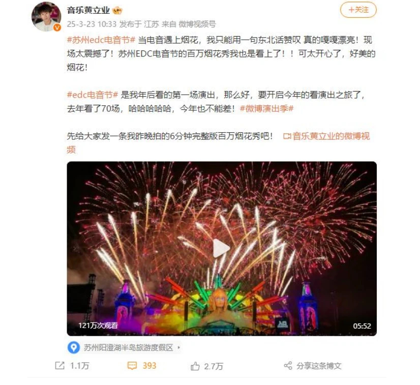 活動(dòng)期間,EDC相關(guān)話題持續(xù)霸榜微博、抖音、小紅書等社交媒體。據(jù)官方預(yù)測(cè),本次EDC嘉年華線上與線下曝光量15億+。