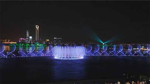 與“蘇州之眼”隔湖相望的,是同樣具有浪漫基因的金雞湖音樂噴泉。去年,金雞湖光影水秀體系整體完成升級改造,音樂噴泉的曲目編排、水形設(shè)計(jì)均進(jìn)行了更新。經(jīng)過重新編排的曲目既體現(xiàn)蘇州元素,又融入現(xiàn)代韻味,與園區(qū)多元包容的城市特質(zhì)相得益彰;噴泉水形設(shè)計(jì)則與音樂充分聯(lián)動,可呈現(xiàn)溫婉精致、恢弘壯觀等不同的視覺場景。游逛金雞湖,“蘇州之眼”×金雞湖音樂噴泉的奇妙組合,將讓游客擁有與眾不同的游玩體驗(yàn)。