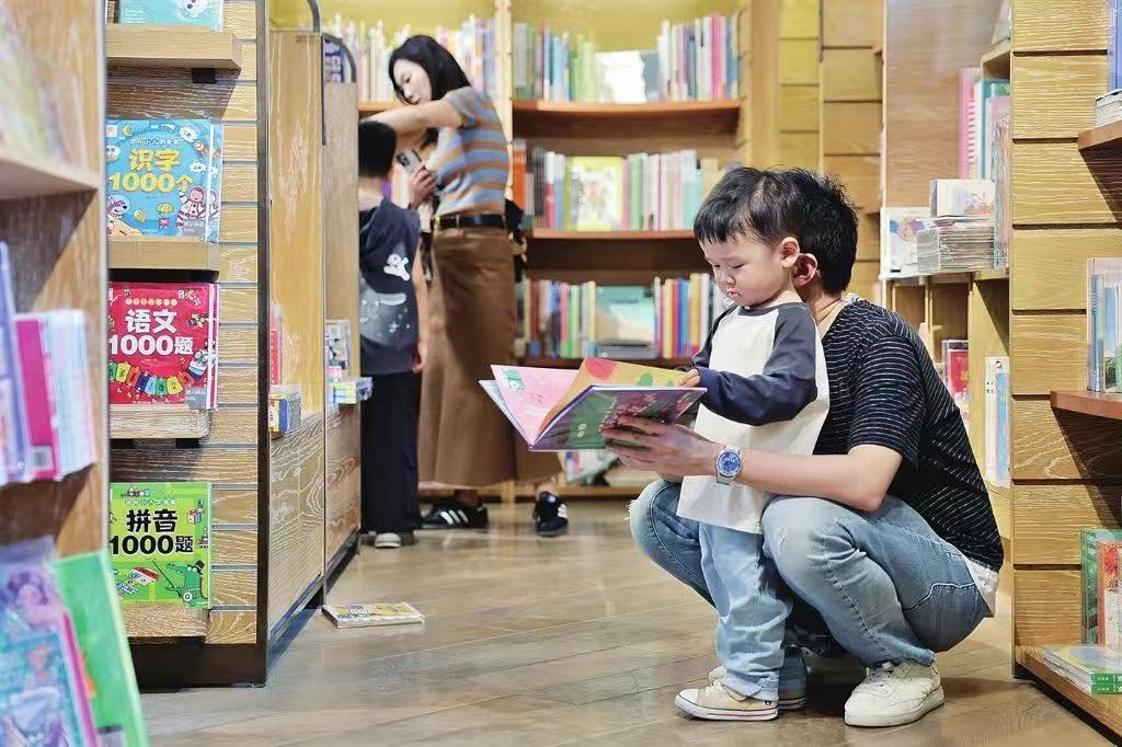 昨天下午,園區(qū)誠(chéng)品書(shū)店內(nèi)人氣滿滿,有家長(zhǎng)帶著孩子一起徜徉書(shū)海。 記者 倪黎祥攝