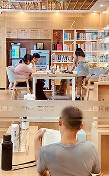 一直以來,園區高度重視閱讀空間的基礎布局,持續補充、優化城市公共閱讀空間,打造了圖館總分館體系,將各色閱讀空間引入企業、學校、產業園、景區等,讓閱讀資源觸手可及。隨著智慧閱讀的普及,園區因時制宜,在全區打造了10個24小時智能圖館,并推動閱讀的跨界融合,拓展新型閱讀空間,包括閱讀巴士、閱讀便利店、閱讀早餐車等創新形態。迄今為止,已有350個公共閱讀服務網點遍布園區,串聯起城市香風景線,切實實現“處處可讀、時時可讀、人人可讀”的美好愿景。