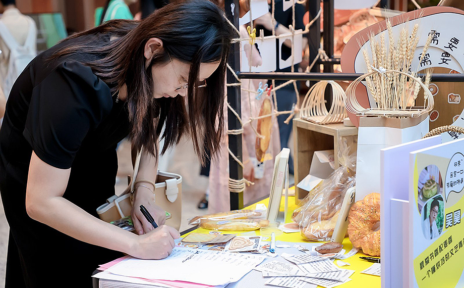 巴斯克蛋糕、窯烤堿水球、德腸面包……在空山手作拆“”包展位上,香與面包香完美交融。來往市民只需現場寫下心中關于閱讀與美食的奇思妙想,就能領取一份“”包,開啟味蕾的神奇之旅。空山手作主理人吳昊是一位愛閱讀、懂烘焙的文藝青年,在他看來,麥香與香有著殊途同歸的默契。“面包滿足口腹之欲,閱讀充盈精神世界,拆‘’包將二者有機結合,為大家提供雙重體驗。在品嘗美味面包的同時,還能盡興閱讀各種籍,同時獲得精神的補給。”