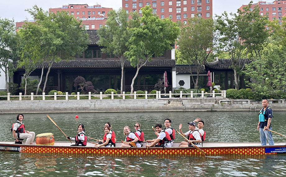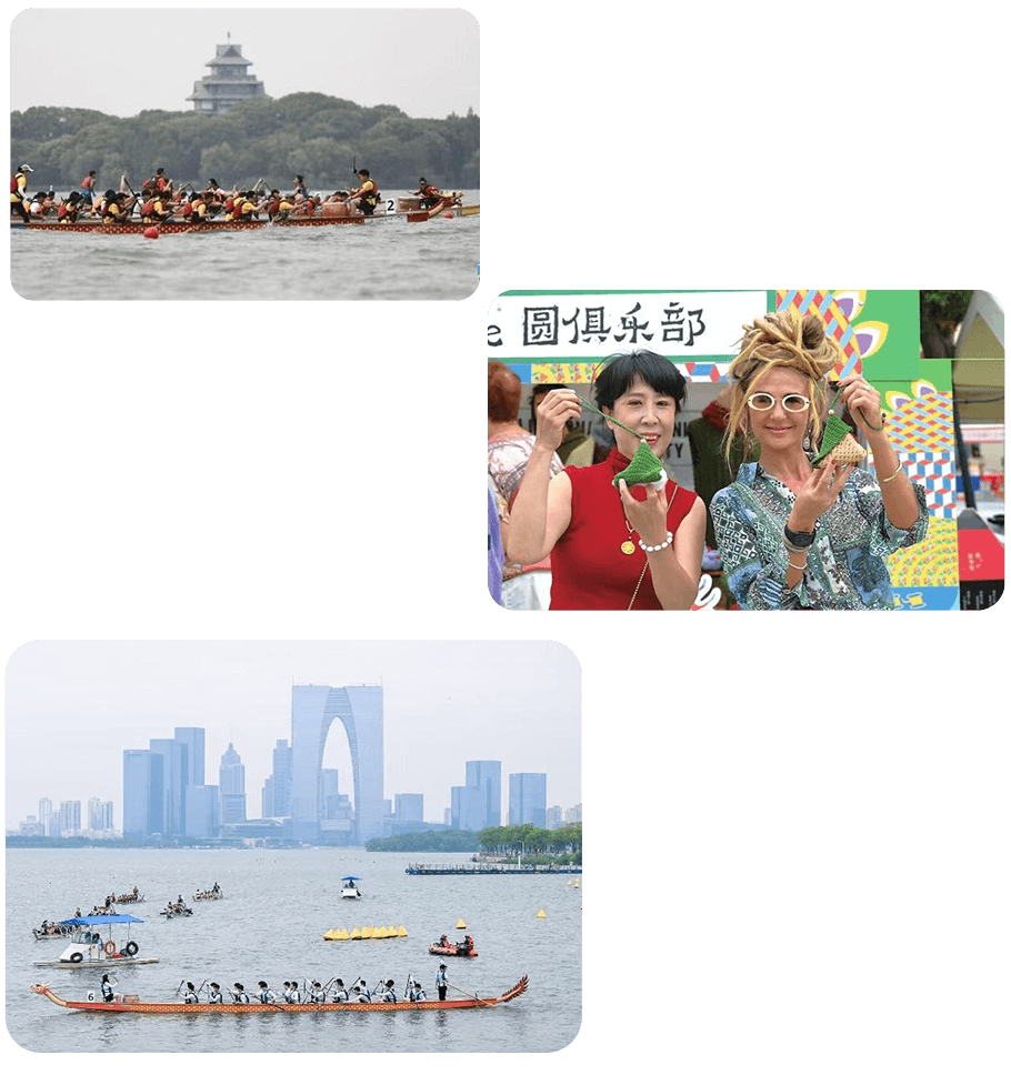 當暮色籠罩斜塘河,粼粼波光之上,船槳劃開水面的聲音與激昂鼓點交織,奏響一曲獨特的奮進之歌。蘇州國際友緣龍舟隊(Suzhou International Friendship Dragon Boat Team)的隊員們正在進行緊張的賽前訓練,不同膚色的手臂,整齊有力地揮動船槳,龍舟如離弦之箭劃開碧波。這支由法國、南非、印度尼西亞等多國留學生組成的特殊隊伍,正以龍舟為紐帶,在園區這片開放創新的熱土上,演繹著跨越國界的文化對話。蘇州國際友緣龍舟隊成立于2021年,已多次亮相金雞湖端午龍舟賽...