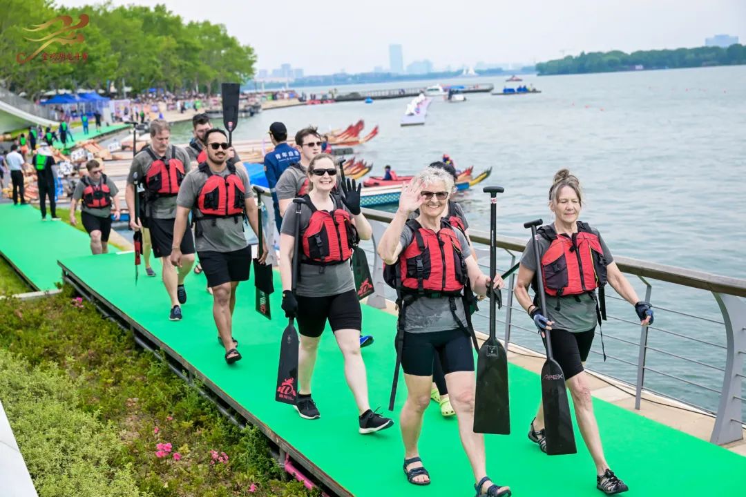 作為蘇州國際化程度最高的區域,園區開放、包容的發展基因在龍舟賽中體現得淋漓盡致。據悉,本屆賽事共吸引7支外籍隊伍參加,隊員則來自加拿大、瑞士、德國、俄羅斯、法國、美國、意大利、西班牙等13個國家和地區。以龍舟為媒,園區正用鏗鏘鼓點搭建起國際對話的新橋梁。