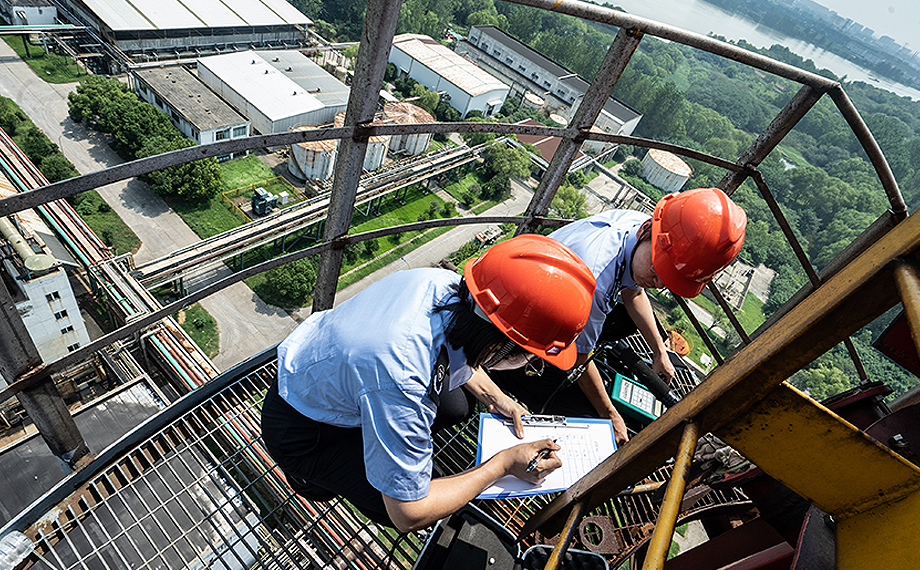提及環境監測,孫亮將其形容為“醫生看病”,對于企業的排污情況,工作人員需要爬到排氣筒旁,先“抽血”、再“驗血”,以此進行判定。而回憶起第一次進行采樣工作時,孫亮的反應遠不如現在從容。“我當時面對的是60米高的煙囪。在恐高與高溫的雙重挑戰下,我背著采樣槍攀爬鏤空的登塔樓梯,硬扛了2個小時才完成監測任務。”