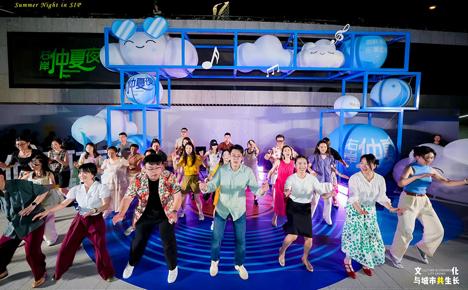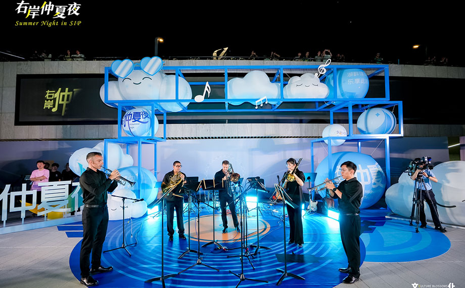 作為園區精心打造的融合藝術、文化與公共生活的城市地標,金雞湖右岸定位“悅動的藝術水岸、活力的城市客廳”,以開放姿態匯聚多元力量,勾勒多元共生的城市文化新圖景。“右岸仲夏夜”系列展演活動,正是城市人文活力的生動呈現。