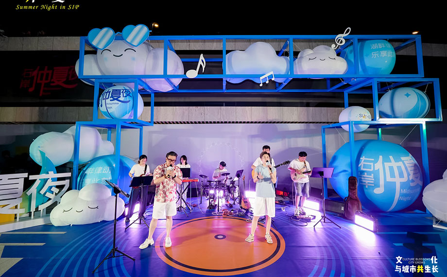 星光為幕,湖水為弦,金雞湖的浪漫在光影與人文的交織中熠熠生輝。流行樂團“佩琦和朋友們”這支由園區青年組成的樂團,也用他們的青春張揚,展現了時尚園區的活力本色。