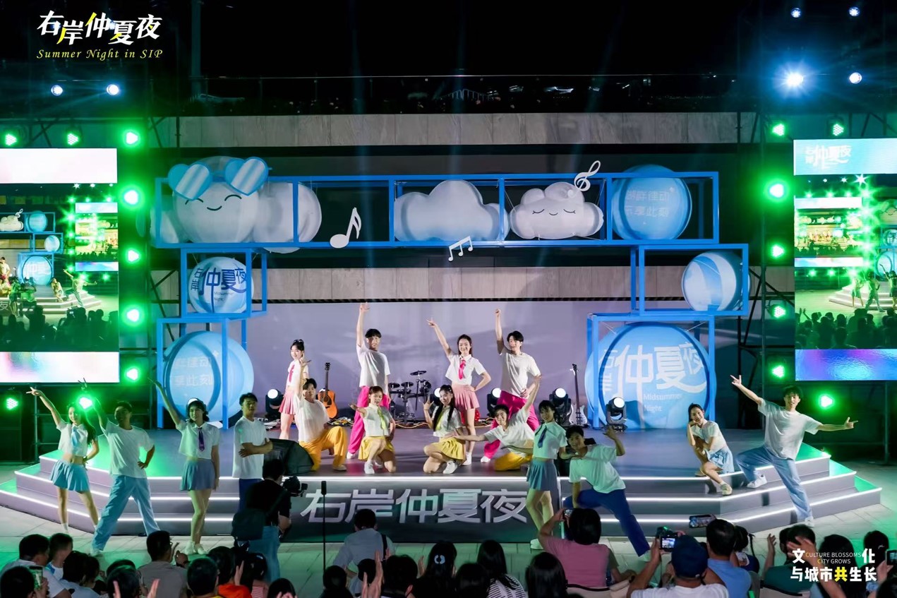 這個夏天,相約右岸客廳,吹湖畔晚風,賞璀璨湖景,聽動人音樂,感受蘇州最國際范兒、最接地氣的夏夜風情。后續“右岸仲夏夜”系列演出將于每周六19:30-20:30,在右岸客廳下沉廣場準時上演。國際元素與本土活力持續碰撞,每個熱愛生活的你,都能成為金雞湖夜色中的閃亮主角,我們不見不散。