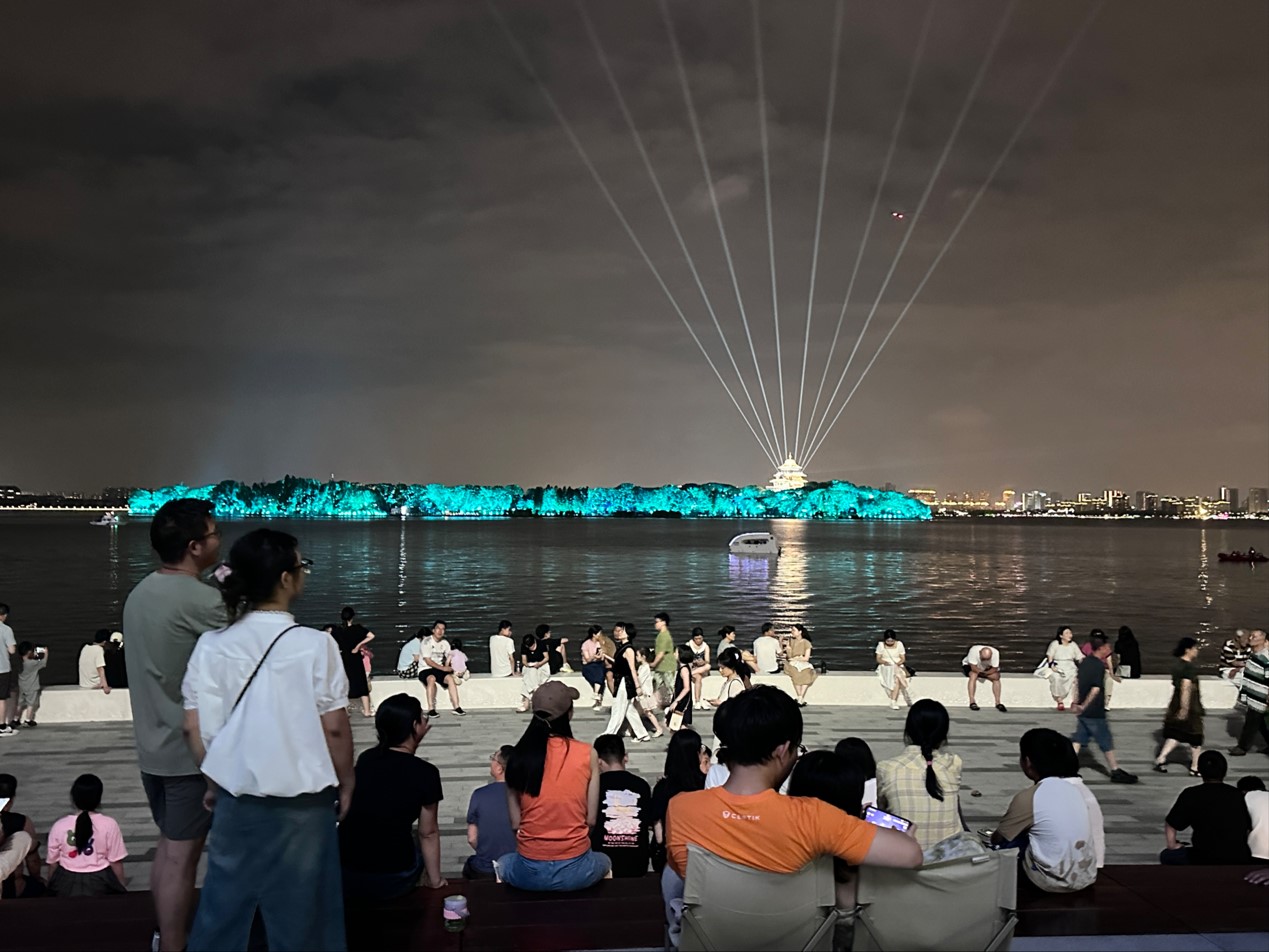 下沉廣場的臺階上,銀發老人搖動蒲扇,孩童騎在父親肩頭歡呼,情侶依偎享受浪漫,不同年齡、不同身份的觀眾在此共享藝術狂歡。“我帶著孩子暑假來蘇州旅游,剛打卡完摩天輪,走到湖邊就被旋律勾住了腳步?!庇慰臀合壬e著手機記錄精彩瞬間,“這種露天音樂會太有氛圍了,很接地氣,感覺整個夏天都鮮活起來,這趟不虛此行?!?/p>
