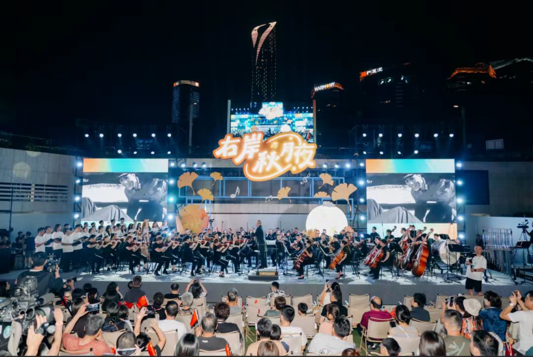 延續這份浪漫,“右岸秋月夜”已開唱。10月1日晚上7點,蘇州交響樂團攜經典旋律登臺。從《紅旗頌》到《唱支山歌給黨聽》......當《我和我的祖國》熟悉的旋律響起時,現場觀眾揮舞小紅旗一起歌唱,以音樂為橋,架起時空穿梭的通道,帶領現場觀眾走進歷史的“畫冊”,感受不同時期的熱烈,激起情感的共鳴。