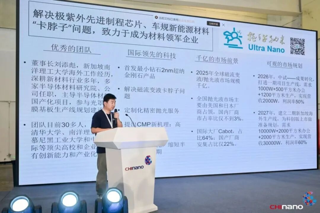 蘇州極鉆納米科技有限責(zé)任公司CEO劉添彪,介紹了《超納金剛石三代半加半導(dǎo)體精拋材料和算法產(chǎn)業(yè)化》。超納金剛石具有量子特性的超小尺寸效應(yīng),比普通金剛石更硬,導(dǎo)熱性、光、聲、電、磁、負(fù)載、生物相容性,可應(yīng)用在精密拋光、磁流變、納米機(jī)器人、核電池等領(lǐng)域。該項(xiàng)目聚焦于超納金剛石材料的宏量生產(chǎn),粒徑晶型表面調(diào)控,相比較傳統(tǒng)的爆轟法破碎法,其超納金剛石尺寸更小一個(gè)數(shù)量級(jí),更凸顯量子特性。作為超納材料高新技術(shù)的先鋒,該公司以半導(dǎo)體產(chǎn)品與車規(guī)新能源材料雙輪驅(qū)動(dòng),構(gòu)建起以研發(fā)為主導(dǎo)、生產(chǎn)、銷售、進(jìn)出口為一體的產(chǎn)學(xué)研結(jié)合新星企業(yè),專注于硬科技、卡脖子、國產(chǎn)替代的戰(zhàn)略布局。