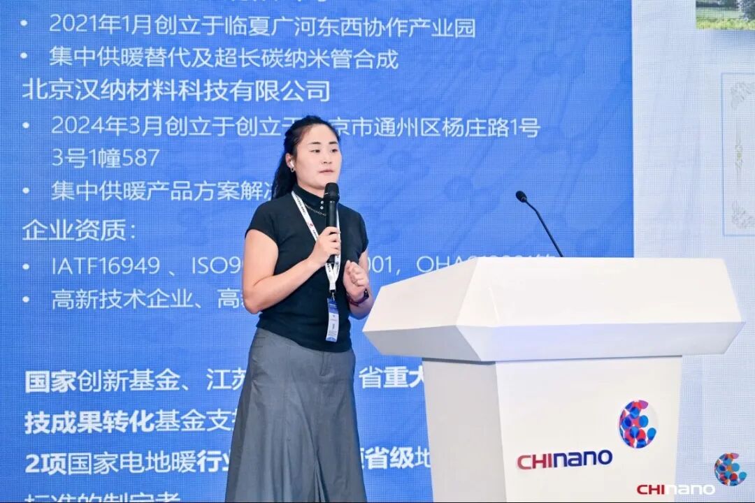 蘇州漢納材料科技有限公司銷售總監(jiān)朱晶晶,分享了《碳納米管及硅碳負(fù)極的研發(fā)及應(yīng)用進(jìn)展》。該公司依托自主研發(fā)的超長碳納米管合成、無損分散及精密成膜技術(shù),實(shí)現(xiàn)電熱轉(zhuǎn)換率高達(dá)99.19%的納米發(fā)熱膜,遠(yuǎn)紅外轉(zhuǎn)換率超85%,顯著提升能效與舒適度。同時(shí),漢納材料在硅碳負(fù)極方向開發(fā)出10nm級(jí)納米硅合成技術(shù),為動(dòng)力電池提供高性能負(fù)極方案;并在單壁碳納米管的量產(chǎn)方向取得顯著突破。企業(yè)憑借60余項(xiàng)專利及多地產(chǎn)學(xué)研合作,持續(xù)拓展碳材料在新能源、健康建筑等領(lǐng)域的應(yīng)用邊界。