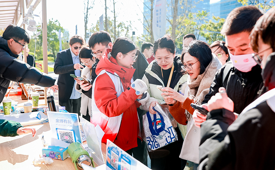 最聚人氣的當(dāng)屬蘇式美食區(qū),剛出爐的蟹殼黃香氣四溢,海棠糕表面的糖霜泛著光澤,攤位前早已排起長龍。市民張女士在新建元數(shù)智灣工作,她熟稔地打開數(shù)字金雞湖APP,掃描商戶展示的數(shù)幣聚合支付碼,僅需幾秒便完成付款。“以前總擔(dān)心數(shù)幣支付操作復(fù)雜,現(xiàn)在一碼通掃太方便了。”她手握熱乎的點(diǎn)心笑著分享,“剛剛還參與了數(shù)幣抽獎,抽中了‘滿50減20’的優(yōu)惠券,等會兒再去別的攤位逛逛。”