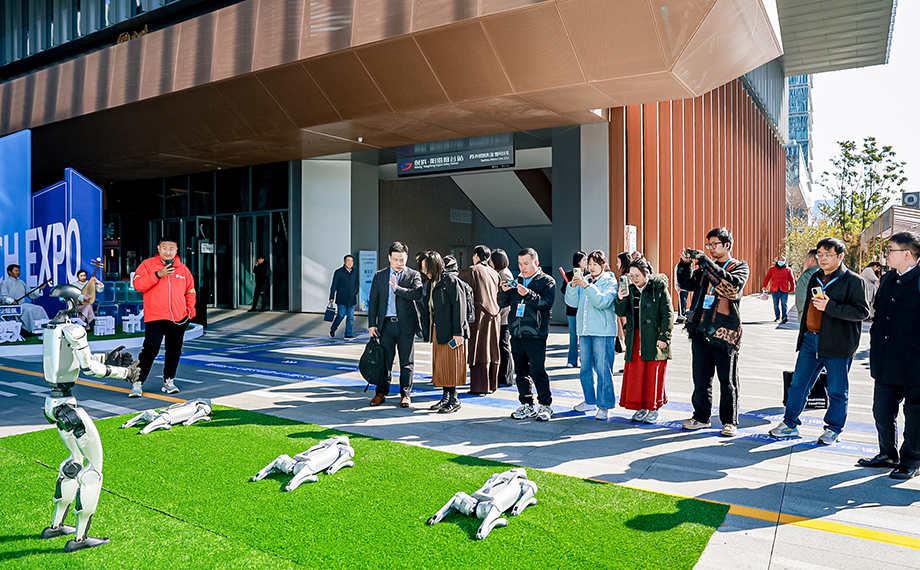 步入市集,婉轉(zhuǎn)柔美的蘇州評彈如清泉般流淌,瞬間將人帶入江南雅境。非遺展區(qū)內(nèi),蘇扇、緙絲、蘇繡等傳統(tǒng)工藝品在陽光下流轉(zhuǎn)生輝,市民紛紛駐足細(xì)賞、咨詢挑選。而在數(shù)字潮玩區(qū),科技感與未來感撲面而來,智能機(jī)器人揮舞雙臂與觀眾互動,憨態(tài)可掬的機(jī)器狗隨著指令完成轉(zhuǎn)圈、跳躍等高難度動作,盡顯科技魅力,引得圍觀群眾陣陣喝彩。