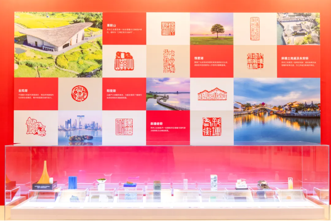 一枚“飛翔”印,源于園區(qū)成立30周年標(biāo)志雕塑。巧妙融合蘇州房瓦元素與飛揚線條,象征這片土地“中新合作、面向未來”的期許。一枚“草鞋山”印,刻畫的正是有著“江南史前文化標(biāo)尺”之稱的草鞋山考古遺址公園。這方穿越六千年的時光印章,刻錄著蘇州最早的稻作文明與先民智慧,是園區(qū)歷史的無聲見證。