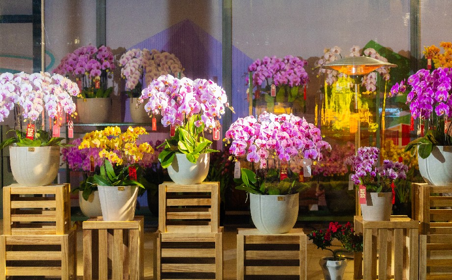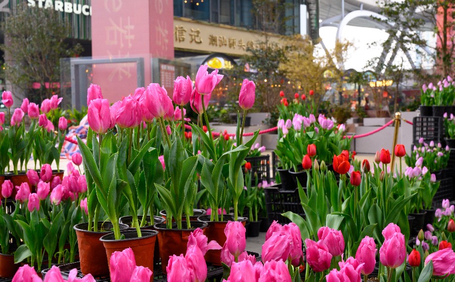 活動(dòng)現(xiàn)場(chǎng),嫩白的“凌波仙子”、鵝黃的重瓣水仙、甜美的山茶、典雅的蝴蝶蘭,以及獨(dú)具姿態(tài)的各色郁金香等,匯聚天幕東街和西街的中心廣場(chǎng),構(gòu)成一組組花團(tuán)錦簇的特色景觀,引得市民游客紛紛駐足。