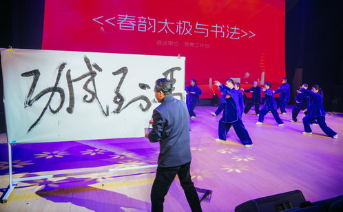 整場(chǎng)演出圍繞“錦繡河山·盛世歡歌”“雅韻流芳·吳儂傳情”“華彩律動(dòng)·時(shí)代風(fēng)采”“初心綻放·幸福回響”四大主題徐徐展開(kāi)。從《五星紅旗》的舞動(dòng)盛世到《次真拉姆》的江南風(fēng)韻,從《祖國(guó)的好江南》的歌聲禮贊到滬劇評(píng)彈的吳儂婉轉(zhuǎn),舞臺(tái)流轉(zhuǎn)間盡展斜塘文脈的深厚底蘊(yùn)。隨后,《快樂(lè)秀》走出時(shí)代風(fēng)采,《春韻太極與書(shū)法》剛?cè)嵯酀?jì),《懷鄉(xiāng)曲》寄托家國(guó)深情,最后《我愛(ài)你中國(guó)》將情感推向高潮,鋪展出一幅傳統(tǒng)與現(xiàn)代交融的文化長(zhǎng)卷。