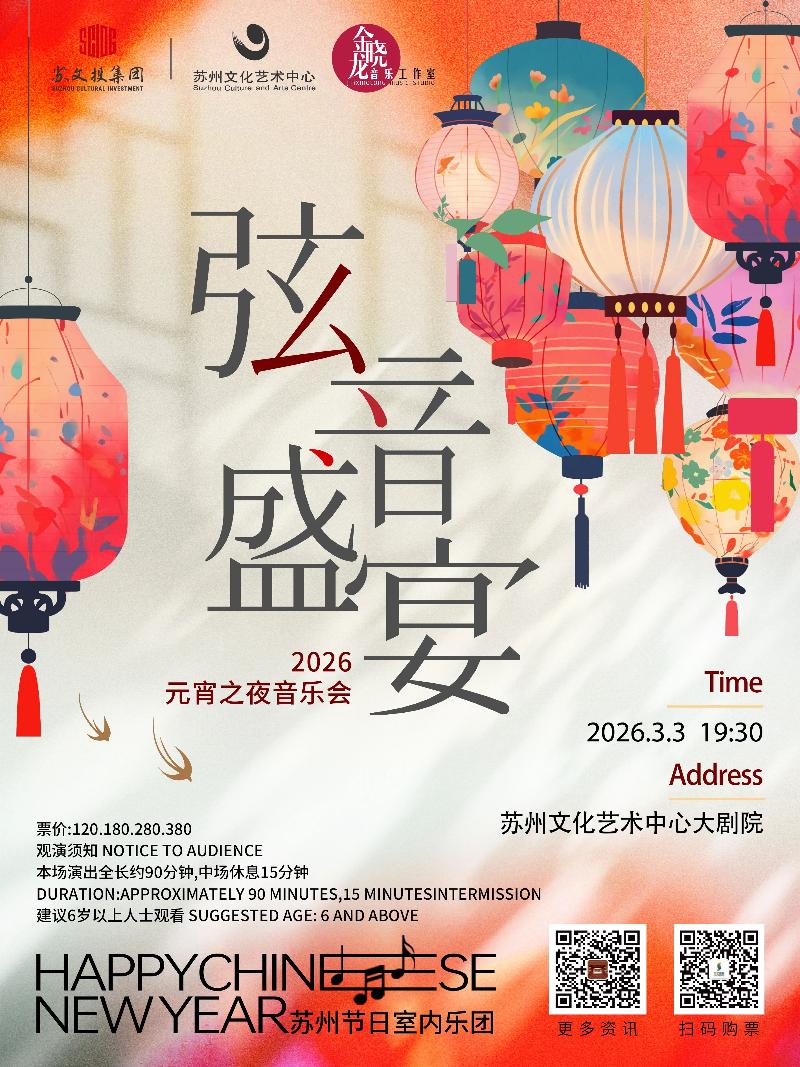 元宵節,蘇州著名小提琴藝術家金曉龍與他的朋友們將來到蘇州文化藝術中心大劇院,為觀眾帶來精彩的弦樂演奏,演出曲目涵蓋了多位大師的浪漫曲,邀您一起共度弦音盛宴2026元宵之夜音樂會。