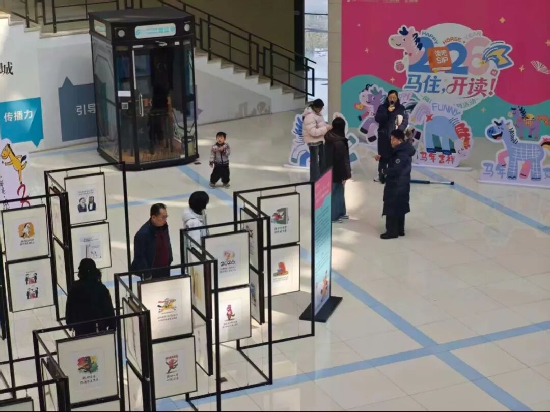 此外,蘇州知名漫畫家阿濤老師還為丙午新春獻上了一份特別賀禮。走進圖書館一樓大廳,百幅圍繞生肖“馬”創作的幽默漫畫,或諧音雙關,或妙解成語,將生活的智慧融于方寸之間,讓讀者們仿佛踏入了一個充滿巧思與歡笑的“精神牧場”。