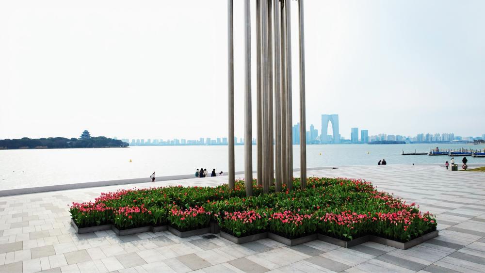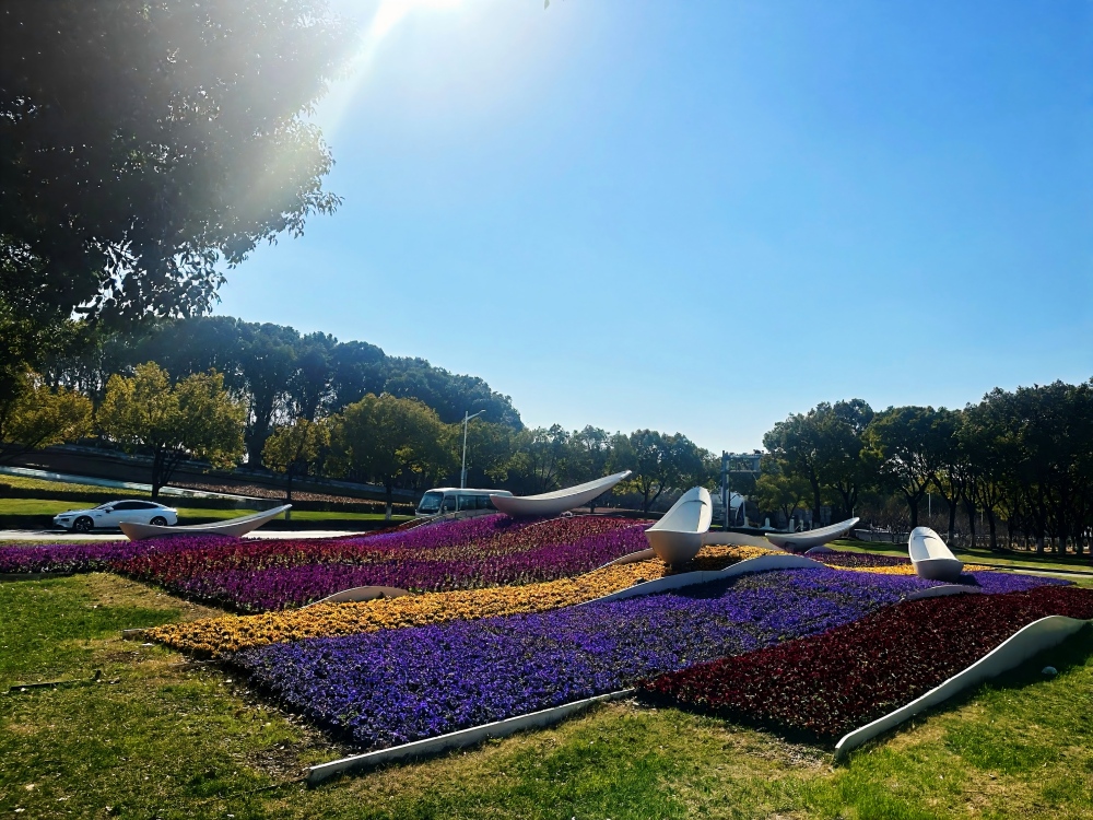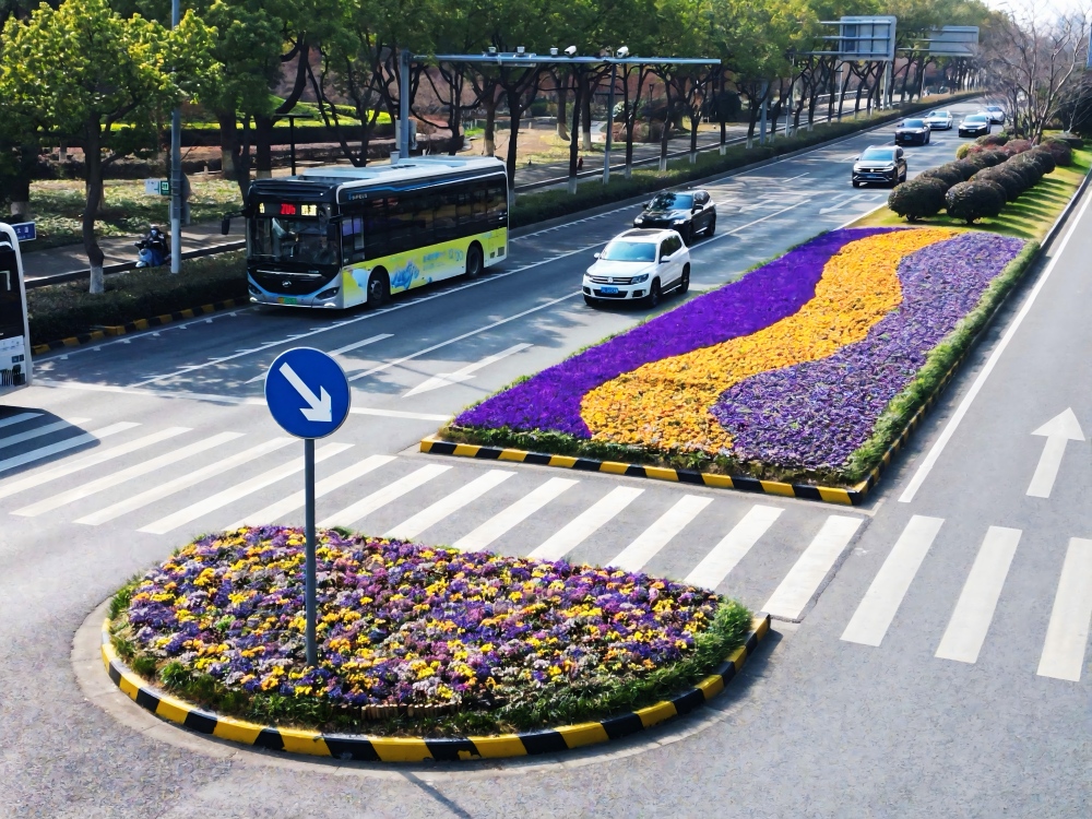花藝造景的精致裝扮,讓園區的新春景致更顯靈動多姿。市政集團精心推進節日掛花、造景工作,重點打造金雞湖大橋、金雞湖人行棧橋、蘇州大道及飛翔雕塑等核心點位的花藝景觀。造型別致的花藝裝飾與橋梁、道路、雕塑相映成趣,成為園區的新春打卡點。此外,園區草花已全面完成冬季養護更新,路口草花區域每日安排專人開展巡視、澆水、修剪等管護工作,五彩斑斕的草花讓園區步步有景、處處生情。