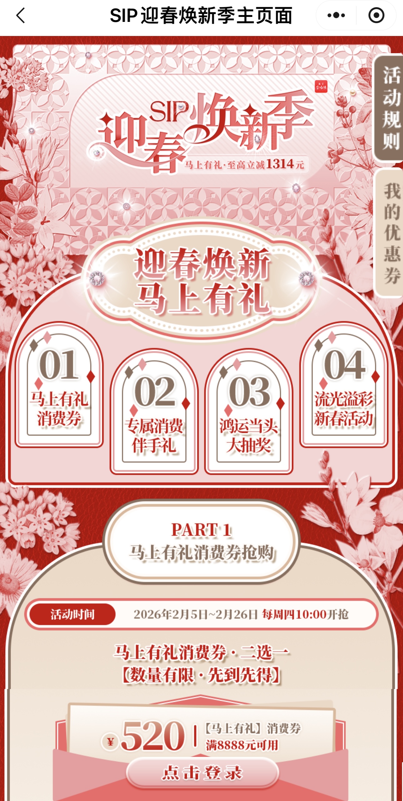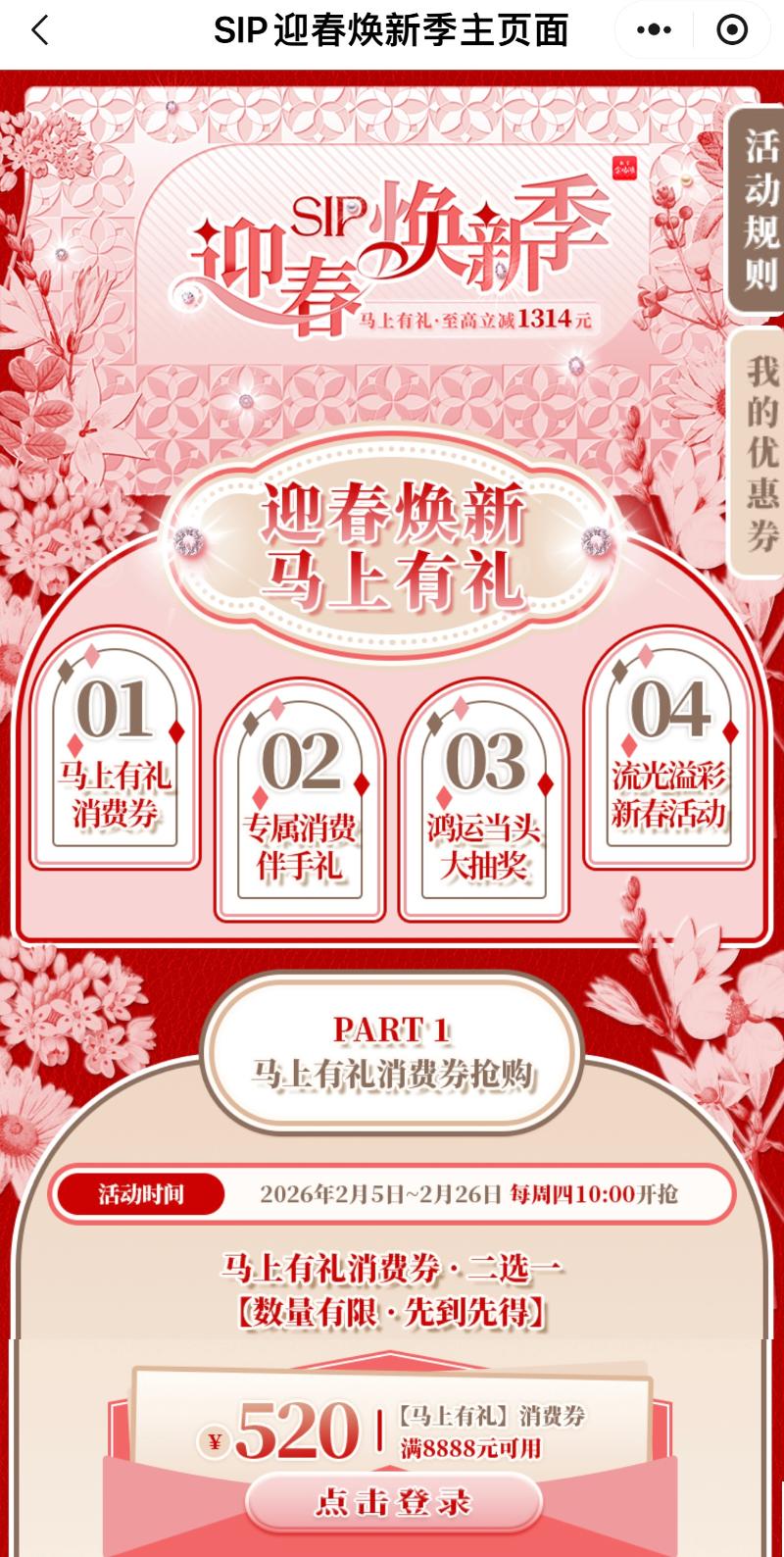 以數字平臺為紐帶,園區打出線上消費券組合拳,真金白銀的補貼政策為新春消費市場注入強勁動能。2月5日至2月26日,園區“SIP迎春煥新季”促消費活動開啟,每周四上午10點準時發放“馬上有禮”消費券,至高立減1314元,可在蘇州中心、比斯特、新光天地等核心商圈通用,無論是置辦年貨、挑選新衣還是選購家居好物,都能暢享“折上折”購物樂趣,單筆消費滿2萬元還可參與“數字金雞湖”平臺幸運抽獎。同步上線的“汽車新春歡樂購”活動持續至4月30日,個人消費者在園區購車可享分梯度現金補貼,至高立減4000元,新能源、智能座駕、家用SUV等熱門車型一應俱全,滿足市民多樣化購車需求。