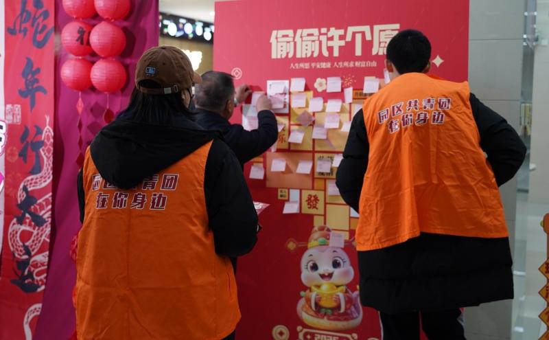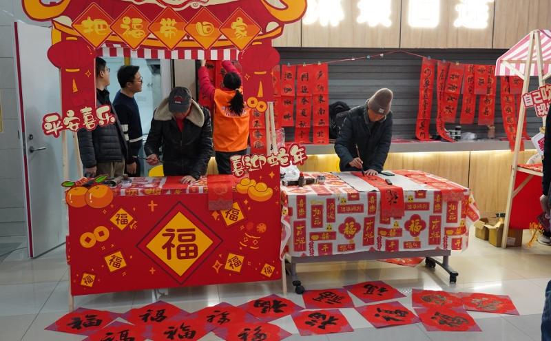 活動(dòng)現(xiàn)場(chǎng),團(tuán)工委還為留蘇青年們準(zhǔn)備了豐富多彩的暖心市集,現(xiàn)場(chǎng)歡聲笑語不斷。糖葫蘆、海棠糕、赤豆圓子……各類蘇式美食香氣四溢,投壺、套圈傳統(tǒng)游戲則吸引了眾多青年參與。在文化體驗(yàn)區(qū),青年們?cè)诜沁z老師的指導(dǎo)下,親手拓印新春“福”字,學(xué)習(xí)傳統(tǒng)技藝,感受江南文化的獨(dú)特魅力;新年祈福墻前,大家紛紛拿起筆,在許愿牌上寫下對(duì)新一年的美好期許;而新春全家福區(qū)域則為青年們定格下了這難得的團(tuán)聚時(shí)刻,留下珍貴的回憶。員工舒女士表示:“這次活動(dòng)很熱鬧、很暖心,雖然沒有回家,但在蘇州也能過一個(gè)有溫度、有年味的春節(jié)。”