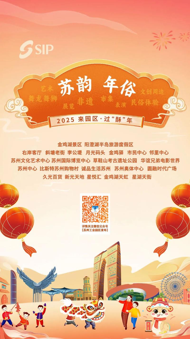 來園區(qū),過“酥”年!2025年將迎來首個“非遺版”春節(jié),蘇州工業(yè)園區(qū)聚焦“商、旅、文”推出“來園區(qū)·過‘酥’年”系列活動,圍繞四大主題,“嗨購樂享”“惠游暢玩”“蘇韻年俗”“悅宿歡娛”,開展精彩紛呈的特色活動,營造濃厚熱烈的節(jié)日氛圍,助力游客市民惠游園區(qū),全方位展示園區(qū)蘇韻年味,進(jìn)一步推動文旅消費(fèi)市場蓬勃發(fā)展。第三期“蘇韻年俗”攻略趕快收藏吧!
