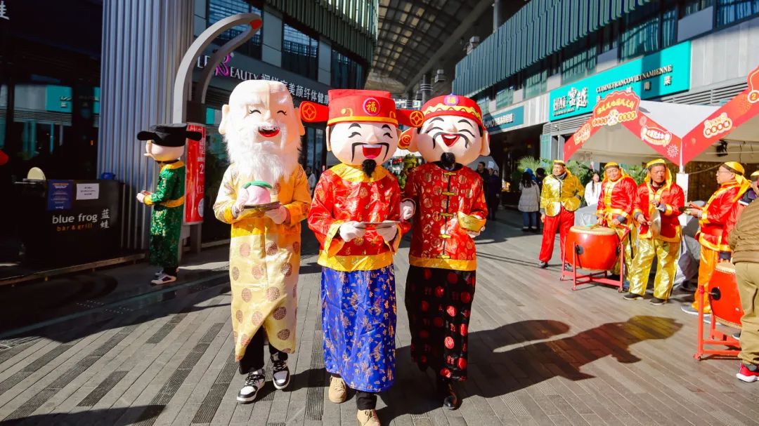 一群憨態可掬的小獅子在梅花樁上輕盈跳躍,時而翻滾,時而嬉戲,還俏皮地從口中“吐”出春聯,為市民游客送上滿滿的新春祝福。這場精彩絕倫的龍獅表演,贏得了現場觀眾的陣陣掌聲,整個商場洋溢著喜慶。