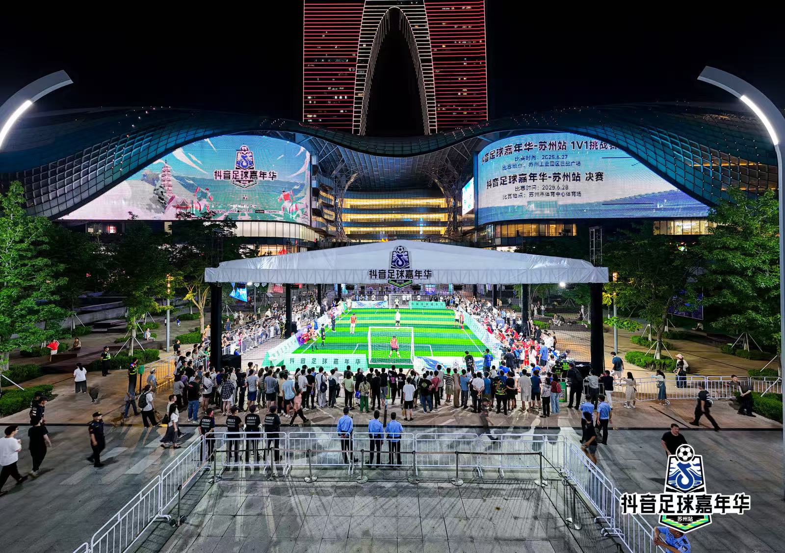 6月27日晚,抖音足球嘉年華蘇州站1v1挑戰賽在蘇州工業園區世紀廣場火熱上演,活動巧妙融合傳統蹴鞠文化與現代足球競技,吸引眾多市民現場參與,帶來了一場集激烈賽事、趣味互動和精彩表演于一體的夏日足球盛宴。