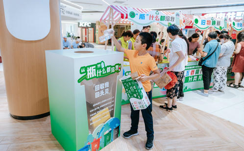 趣味游戲區(qū)的創(chuàng)意設(shè)計(jì)亮點(diǎn)頻出。居民們手持打卡地圖,穿梭于“垃分視力表”“分類大轉(zhuǎn)盤”“綠色補(bǔ)給站”等八大互動點(diǎn)位,通過趣味測試、知識問答、投擲游戲等方式邊玩邊學(xué)。“‘瓶’什么都給我”專區(qū)人氣爆棚,居民王阿姨用積攢的飲料瓶兌換了綠蘿,笑得合不攏嘴。“城投再生”“綠色補(bǔ)給站”和“舊物煥新”專區(qū)也深受居民青睞,居民們拎著紙箱、舊衣物排隊(duì)兌換環(huán)保袋、文具等實(shí)用物品,直觀感受到“垃圾是放錯(cuò)位置的資源”。游戲化體驗(yàn)不僅提升了垃圾分類知識的趣味性和互動性,更讓居民在輕松愉悅的氛圍中掌握分類技巧、提升環(huán)保意識。針對還不太熟悉如何正確分類的居民,志愿者則一對一講解垃圾分類知識,實(shí)現(xiàn)寓教于樂“零距離”。此外,志愿者們還同步宣傳倡導(dǎo)“光盤行動”“限塑”“減少使用一次性用品”等源頭減量、簡約適度的生活方式。