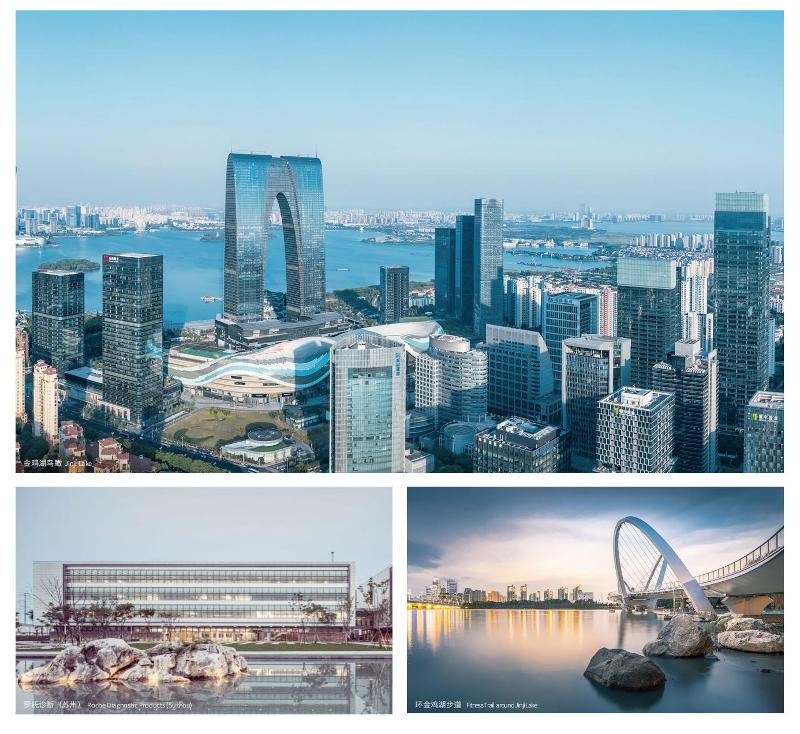 以金雞湖為核心展開,環(huán)金雞湖區(qū)域布局中央商務(wù)區(qū),構(gòu)成園區(qū)的城市級中心;圍繞80平方公里“中新合作區(qū)”,布局商務(wù)、科教創(chuàng)新、旅游度假、高端制造與國際貿(mào)易四大功能板塊,形成“產(chǎn)城融合、區(qū)域一體”的城市發(fā)展架構(gòu)。