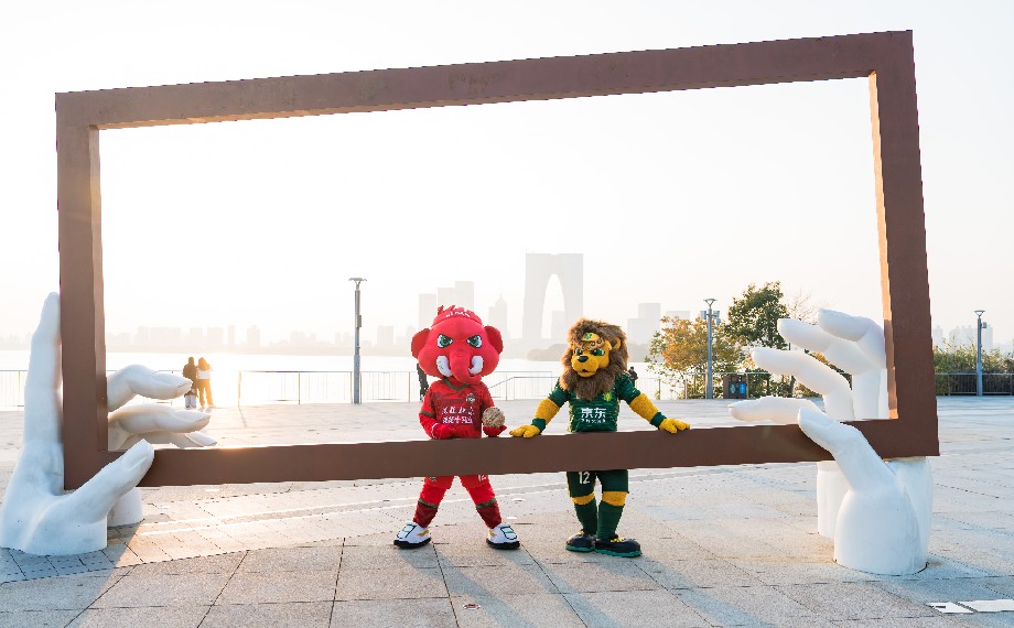 腳踏足球,北京國安的吉祥物“京獅”朝氣蓬勃,身上的12號球衣,將球隊與球迷緊緊相連。河南俱樂部的吉祥物“巴布”則以大象的形象和紅色主色調,彰顯無畏、自信、堅韌、拼搏的精神內核。它們萌趣活力的形象在金雞湖畔留下這個秋末初冬的一份獨特記憶。