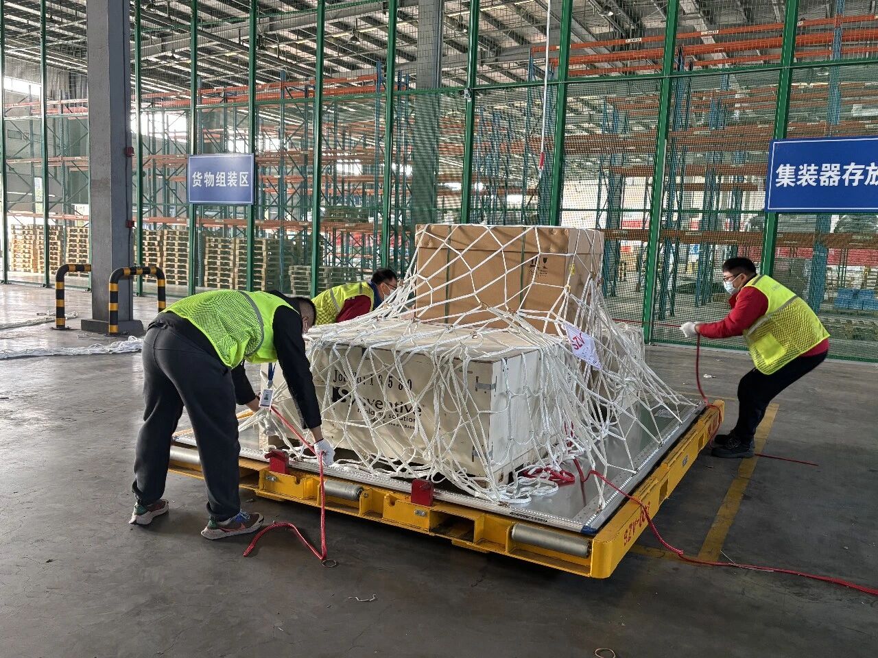 與以往不同的是,車上裝載的是蘇州前置貨站首票經過海關全流程自動化監管放行的貨物,它們即將搭乘當晚阿特拉斯航空8277次和埃塞俄比亞航空3749次航班,分別飛往美國和奧地利。