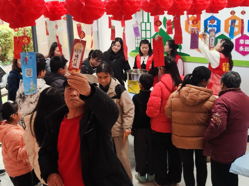 活動當天,青年志愿者與社區工作人員化身節日里的“暖心使者”,提前到場布置場地、懸掛燈籠燈謎、備齊活動物料,現場有序引導居民簽到參與,全程關注老年居民、親子家庭及特殊群體需求,為行動不便居民開辟綠色通道。志愿者們分工明確、默契配合,用真誠與堅守為活動順利開展筑牢了堅實保障。