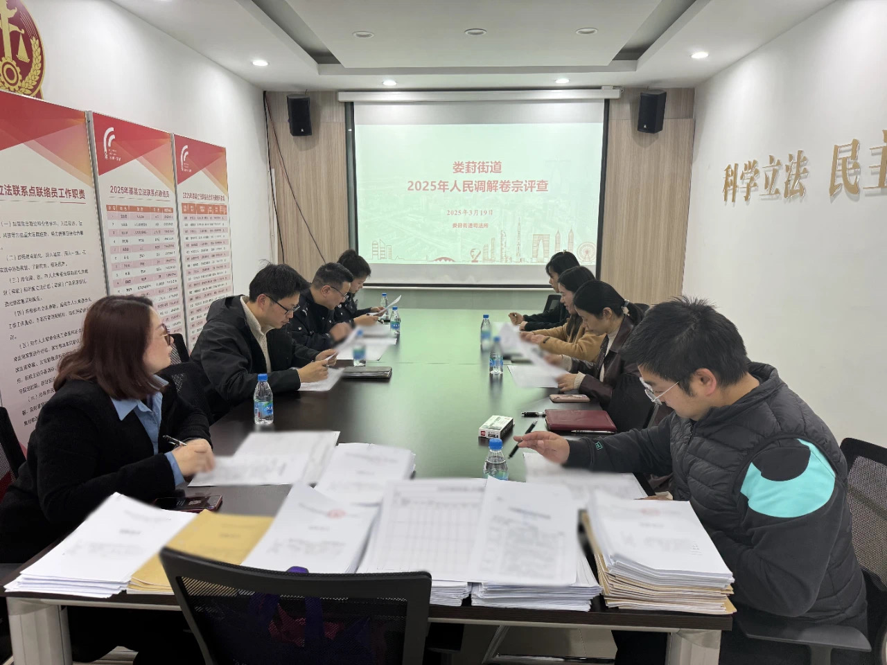 “各位評審老師,請大家從程序合規(guī)性、文書規(guī)范性、回訪真實性、歸檔完整性等方面開展檢查,詳細(xì)查看調(diào)查記錄、調(diào)解記錄、協(xié)議內(nèi)容等材料,發(fā)現(xiàn)問題請記錄到我們剛剛發(fā)的評查表上。”3月初,婁葑街道司法所組織開展人民調(diào)解卷宗評查活動,活動邀請區(qū)司法局資深調(diào)解員、街道法律顧問、派出所及社區(qū)調(diào)解員代表共同組建評查小組。評查組抽取了街道調(diào)委會、各社區(qū)調(diào)委會、街道駐派出所調(diào)解室等上一年度調(diào)處的70余件調(diào)解案件,對案件卷宗開展系統(tǒng)評查。“此次評查下來,案卷質(zhì)量整體良好,但是也存在一些普遍問題,如協(xié)議書編號不規(guī)范、申請人一方為單位的,沒有注明法定代表人信息,接下來我們要整合匯總評查結(jié)果,反饋到各調(diào)解組織,在今后的調(diào)解過程中及時糾正。”評查結(jié)束后,司法所負(fù)責(zé)人鮑微對調(diào)解卷宗的整體情況進(jìn)行了總結(jié),并提出了下一步工作方案。后續(xù),司法所將建立調(diào)解卷宗定期評查機(jī)制,通過全面檢查調(diào)解卷宗了解調(diào)解工作的規(guī)范性、合法性和有效性,以提升調(diào)解案件的質(zhì)量和調(diào)解工作公信力。