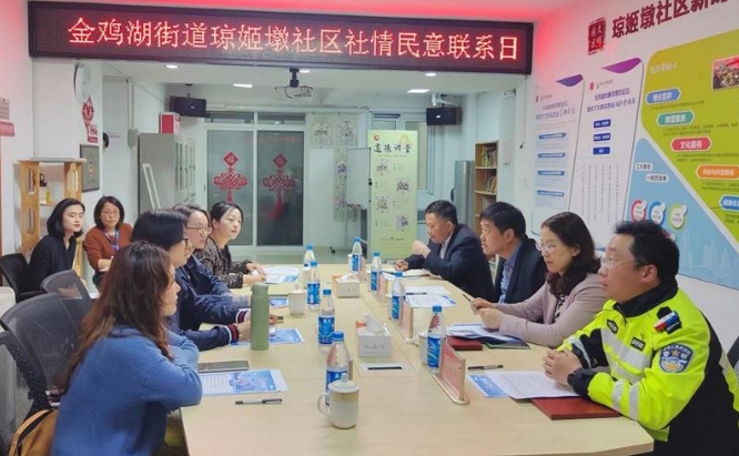 在金雞湖街道瓊姬墩社區(qū),沈磊一行與居民代表就公共交通、社區(qū)配套等事項(xiàng)進(jìn)行了逐一討論。對(duì)于居民代表反映的環(huán)洲路幼兒園門(mén)口家長(zhǎng)占道停車(chē)影響交通的情況,沈磊及與會(huì)領(lǐng)導(dǎo)表示,街道要結(jié)合轄區(qū)校園實(shí)際,因地制宜設(shè)置“護(hù)學(xué)崗”,為學(xué)生安全保駕護(hù)航。同時(shí),交警部門(mén)也要加大校園周邊,特別是上學(xué)、放學(xué)時(shí)段的道路巡邏管控力度,引導(dǎo)家長(zhǎng)文明停車(chē),保障停車(chē)秩序,緩解通行壓力。