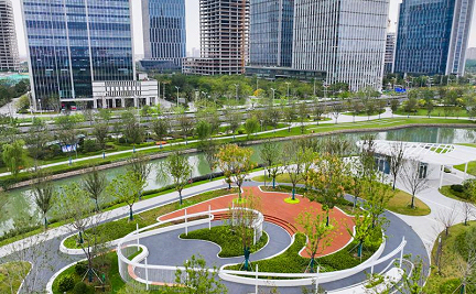 The Zhujing River Park in Yangcheng Yinzuo, a headquarters cluster in SIP’s Yangcheng Lake Peninsula Tourist Resort, opened to the public recently, forming an integrated space for business, recreation and travel with the surrounding office buildings, greenbelts and footpaths and water.