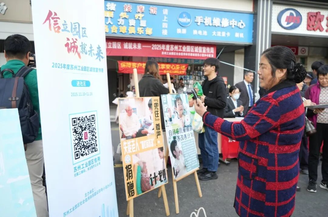 信立園區,“誠”就未來。為深入推進社會信用體系建設,營造“知信、用信、守信”的良好社會氛圍,11月14日,“信立園區,‘誠’就未來”2025年度蘇州工業園區誠信宣傳周進社區活動在唯亭街道青苑商業廣場開展。