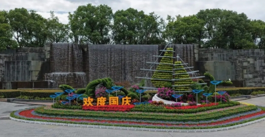 一座以“揚(yáng)帆逐浪,生態(tài)和諧”為理念打造的國(guó)慶主題綠雕在國(guó)賓路路口正式落成。該景觀以浪花、船帆為造型主體,搭配游魚(yú)、飛鳥(niǎo)等自然元素,生動(dòng)傳遞出園區(qū)勇立潮頭、奮發(fā)進(jìn)取的精神風(fēng)貌。綠雕基座部分綜合運(yùn)用近3萬(wàn)盆時(shí)令花卉與精品苗木,包括一串紅、矮牽牛、鼠尾草、歐月、向日葵等多個(gè)品種,通過(guò)科學(xué)配植與藝術(shù)構(gòu)圖,形成色彩鮮明、層次豐富的花海浪濤意象,進(jìn)一步提升核心區(qū)域景觀品質(zhì)。