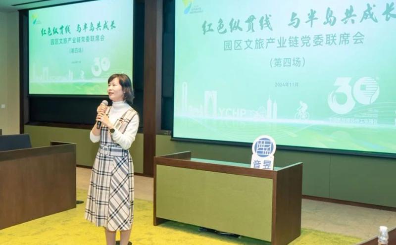 2023年底,園區(qū)工委組織部成立了文旅產(chǎn)業(yè)鏈黨委,積極探索“1+1+N鏈?zhǔn)近h建”工作格局,通過“鏈產(chǎn)業(yè)”“鏈平臺”“鏈資源”,以點(diǎn)串線、串珠成鏈、聚鏈成群,推進(jìn)鏈上文旅企業(yè)“聚鏈”“壯鏈”“優(yōu)鏈”,提升集聚力和競爭力,不斷推動文旅產(chǎn)業(yè)“鏈”上開花。