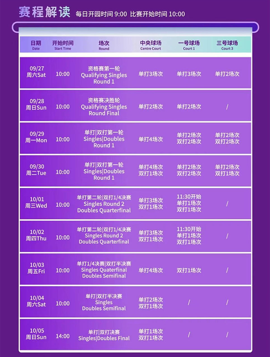 據悉,9月27日至10月5日每日9:00開園,10:00開始比賽(10月5日決賽開始時間為14:00),賽事票價根據場次、場地不同分為99元、199元、599元三檔,并設置包含所有賽事的1299元“蘇網通”。