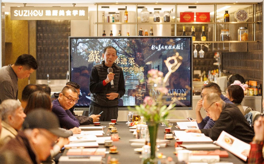 文化是蟹宴的靈魂,而蔣洪則是行走的“美食文化密碼本”。資深飲食文化學(xué)者、蘇州江南美食文化基金會顧問、蘇州市烹飪協(xié)會飲食文化研究專委會主任、吳越美食推進(jìn)會創(chuàng)始會長……這些頭銜不僅是多年探索吳地飲食文化的印跡,更是代表了業(yè)內(nèi)對他的認(rèn)可和尊敬。堆滿他辦公室的泛黃古籍除了是挖掘“江南運(yùn)河宴”和“吳江十二鮮”等傳統(tǒng)宴席的“尋寶圖”,也早已化為他腦海中的“美食活字典”。