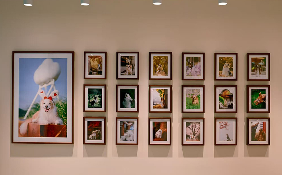 不同于“初二家”的萌趣溫馨,隔壁的“芒果寵物攝影”則是滿滿的文藝范兒和“ins風”,店內(nèi)的墻上掛滿了毛孩子們在各地撒歡的藝術寫真,內(nèi)景棚也根據(jù)不同主題布置得十分精美。“我們的攝影師擁有豐富的寵物拍攝經(jīng)驗,并且會基于每只寵物的習性進行引導拍攝。”品牌主理人蝦仁認為,家長與毛孩子相處的每一個瞬間都是值得被記錄的幸福時刻:“我們想用影像記錄下毛孩子們的美好。”